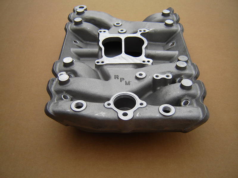 This is the aluminum intake manifold designed and built for the classic GMC Motor Home. It is low rise to fit under the floor and has provisions for fuel injection.