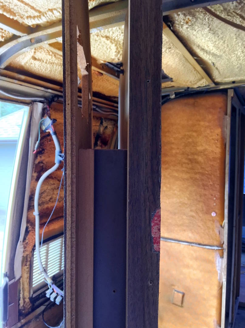 Edge view of the storage cabinet beside entrance door and part of the fridge cabinet.