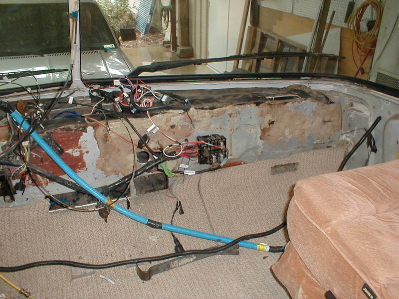 Here's the passenger side. My intention is to place a duct from the center "MaxAir" outlet to the top of the forward dash. From there a lateral duct will service outlets in front of the passenger and two 2-1/2" hoses will lead to the driver's side.