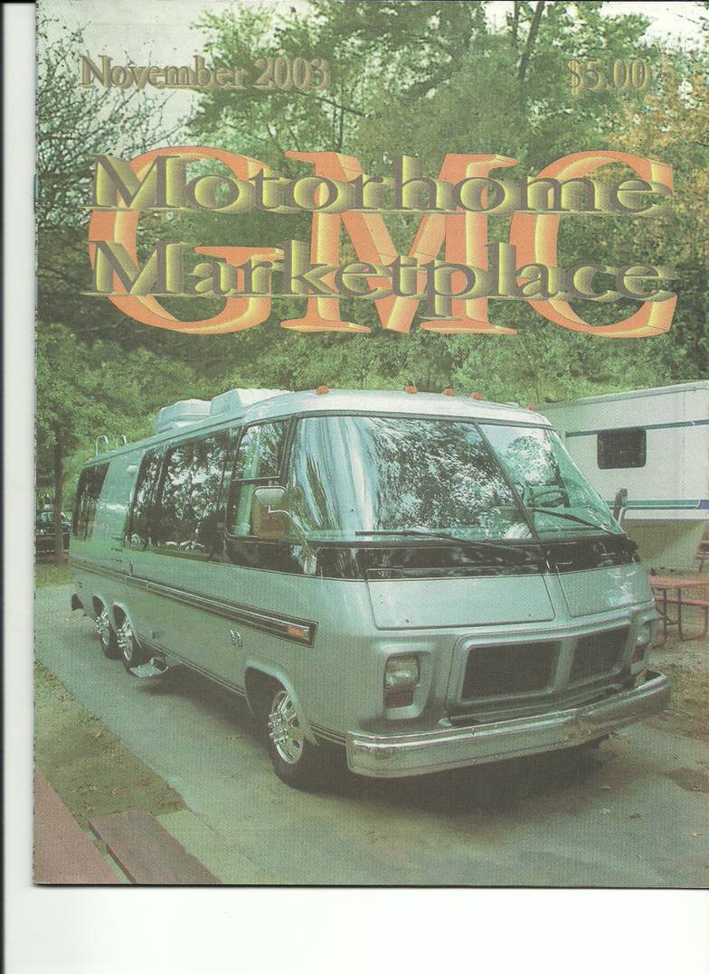 GMC Motorhome Marketplace, November 2003 cover photo. The same coach pictured on the 11/92 cover. Now owned by Tom & Geri Whitton, refurbished and repainted.